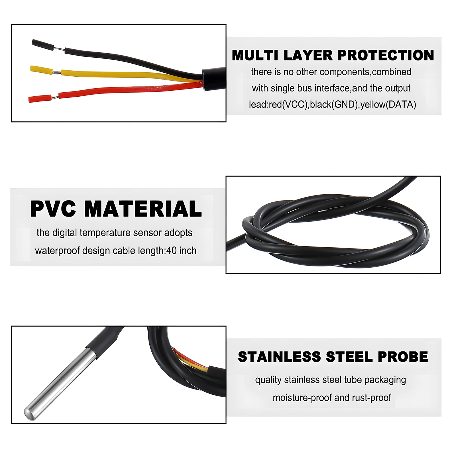 Points clés du capteur de température étanche DS18B20
