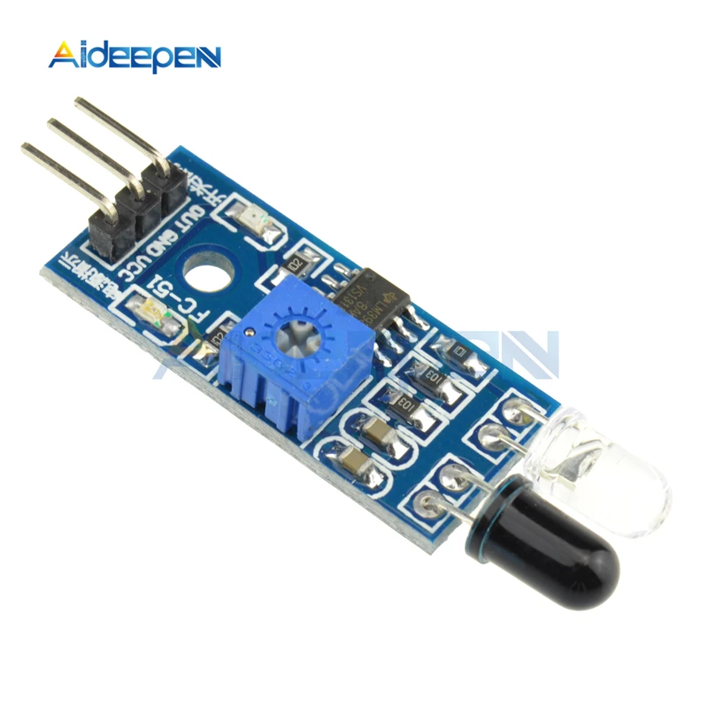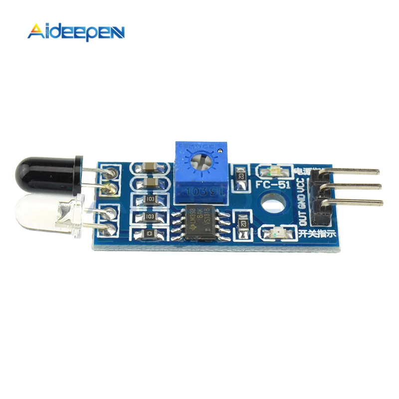 Le module de capteur de lumière a une forte adaptabilité à l’environnement, ayant une paire d’émetteur et de récepteur infrarouges, l’émetteur lance une certaine fréquence infrarouge, lorsqu’il rencontre un obstacle dans la direction de détection, le récepteur infrarouge est réfléchi par le tube récepteur, après traitement à travers le circuit comparateur, Le voyant vert s’allume alors que le signal numérique de sortie de l’interface de sortie du signal (un signal de bas niveau) peut être réglé via la distance de détection du bouton du potentiomètre, la plage de distance effective 2 ~ 30cm, tension de fonctionnement est de 3.3V-5V. La plage de détection du capteur peut être ajustée par le potentiomètre, avec peu d’interférences, facile à assembler, fonctionnalités faciles à utiliser, peut être largement utilisé pour éviter les obstacles du robot, le comptage de la ligne d’assemblage de la voiture d’évitement d’obstacles et le suivi de la ligne noir et blanc et de nombreuses autres occasions.
