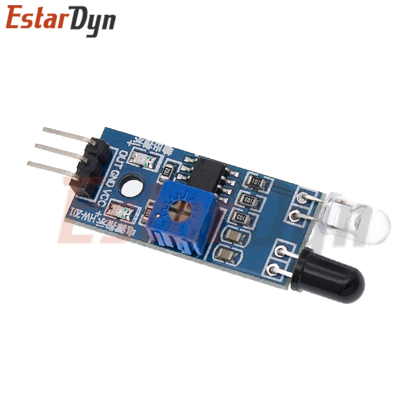 Le module de capteur infrarouge pour éviter les obstacles est un module adaptable à la lumière ambiante. Il est équipé d’une paire de tubes émetteurs et récepteurs infrarouges. Les tubes émetteurs émettent un certain rayonnement infrarouge. Lorsque la direction d’un obstacle est détectée, l’infrarouge réfléchi est reçu par le tube de réception. Après traitement par un circuit de comparateur, le voyant vert s’allume et un signal numérique (bas niveau) est produit sur l’interface de sortie. La distance de détection peut être ajustée en utilisant le potentiomètre du bouton de distance de détection. Ce capteur est facile à assembler et à utiliser, et peut être largement utilisé dans des applications telles que l’évitement d’obstacles pour robots et voitures, le comptage de lignes, le suivi de lignes noir et blanc, etc.
