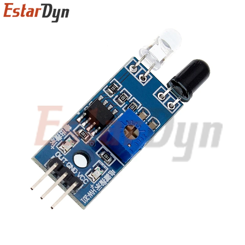 Le module capteur infrarouge est adapté à l’éclairage ambiant et possède une paire de tubes émetteurs et récepteurs infrarouges. Les tubes émetteurs envoient un signal infrarouge d’une certaine fréquence, qui est réfléchi par la surface d’un obstacle détecté. Après un traitement par un circuit comparateur, la LED verte s’allume et le signal de sortie INTERFACE émet un signal numérique (niveau bas). La distance de détection peut être ajustée grâce à un potentiomètre, avec une plage de distance efficace de 2 à 30 cm. Le capteur peut être utilisé dans de nombreuses applications telles que l’évitement d’obstacles pour les robots, les voitures évitantes, le suivi de lignes et le comptage des lignes noires et blanches. Il est facile à assembler et à utiliser grâce à ses faibles interférences.