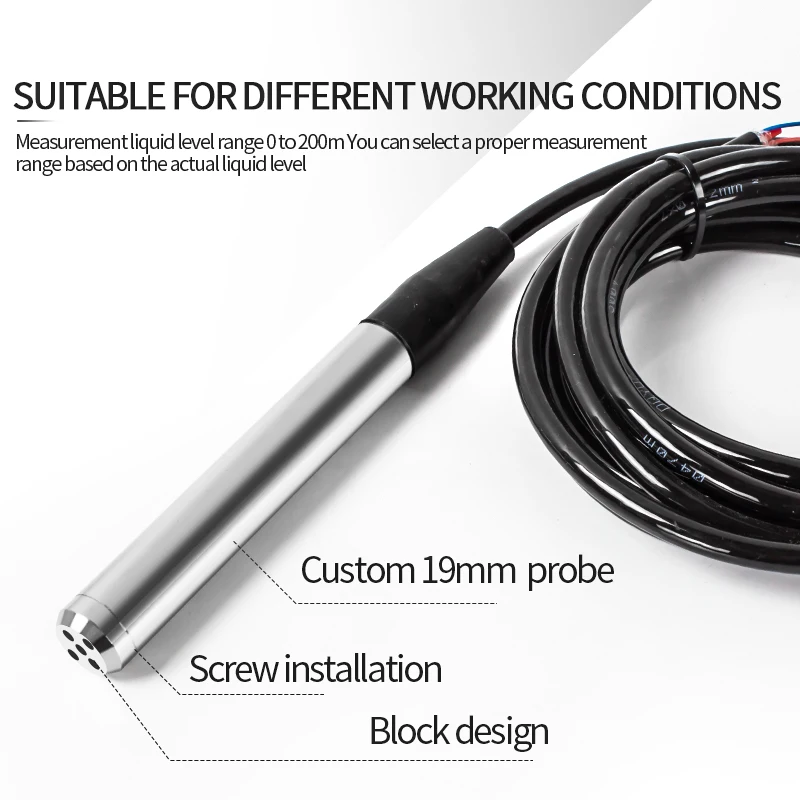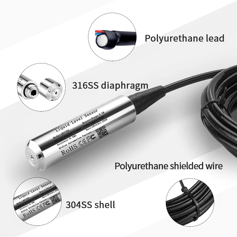 - La membrane du capteur est fabriquée en matériau 316L et est équipée d’un câble conducteur d’air blindé à cinq conducteurs en polyuréthane, qui peut transmettre des signaux au-delà de 2km.
