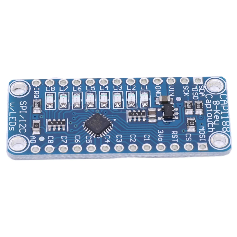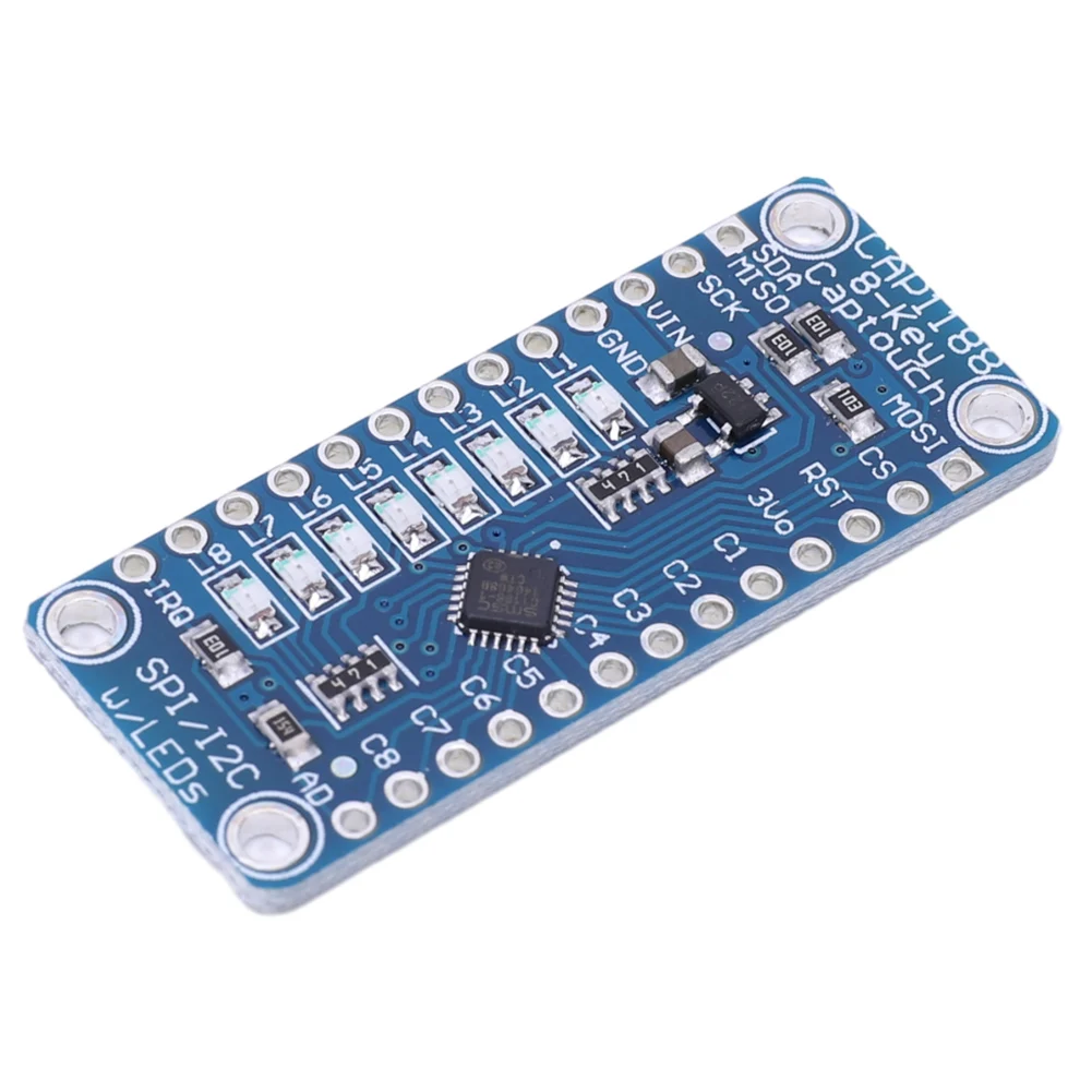 Le capteur tactile capacitif CAP1188 LED 1602 est un composant électronique qui vous permet d’ajouter facilement 8 boutons tactiles à votre projet de microcontrôleur. Ce capteur permet une détection tactile précise et fiable grâce à sa large plage de sensibilité.