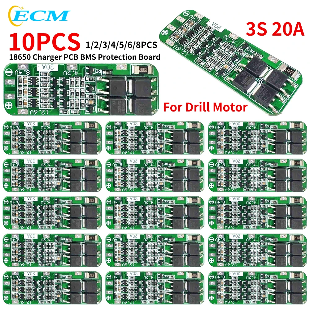 - 59x20x3.4mm 18650 Chargeur PCB BMS Protection Board Design simplifié 3S 20A Li-ion Batterie au lithium Protection Board Module Haute Tension Sortie 18650 Chargeur BMS Protection Board Module pour moteur de forage