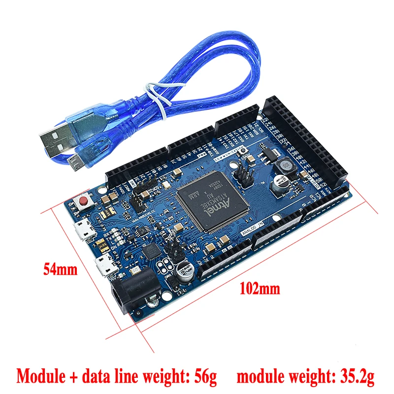 | Broches d’E/S numériques | 54 (dont 12 fournissent une sortie PWM) |