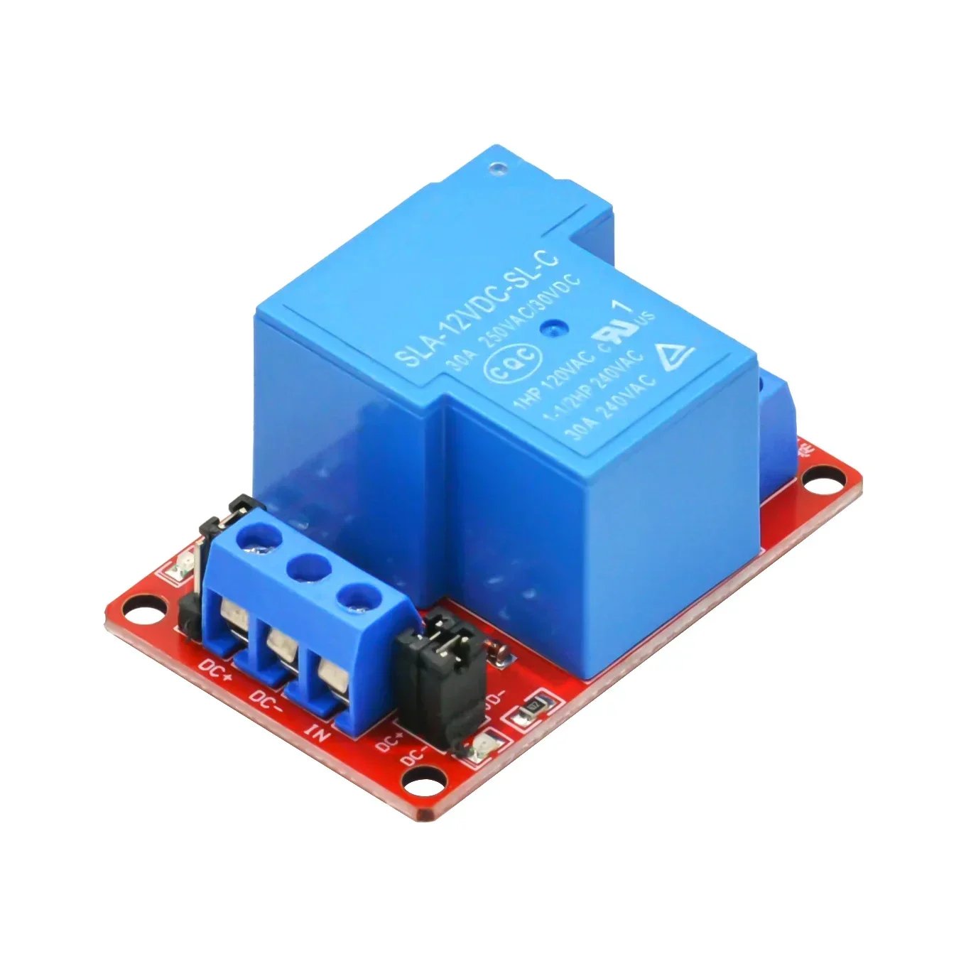 | Description | Module relais 30A, charge maximale d’interface normalement ouverte: AC 250V/30A, DV 30V/30A. Isolation de couplage optique, capacité d’entraînement est forte, performance stable; Le courant de déclenchement est de 5mA. Module peut être réglé haut niveau ou bas niveau déclencheur par le cavalier. Voyant d’alimentation (vert), voyant de statut de relais (rouge). |