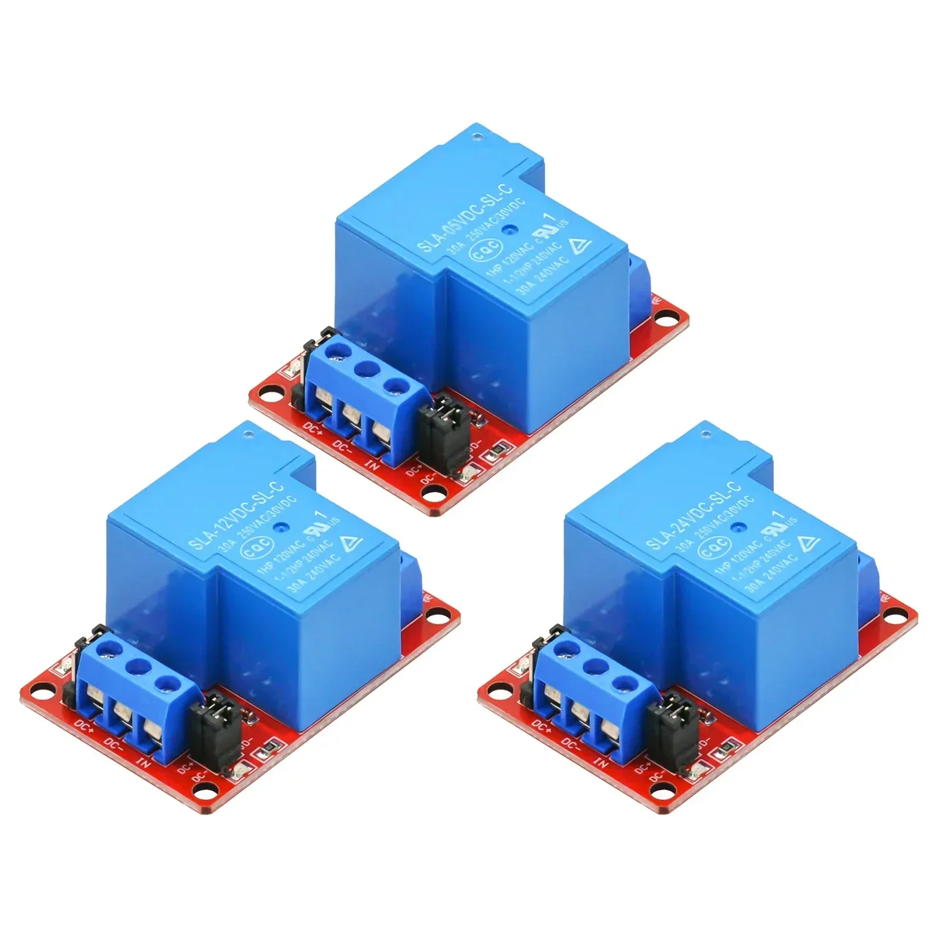 Le module est disponible en trois versions de tension: 5V, 12V et 24V. Le courant de travail varie selon la version: 190mA pour 5V, 80mA pour 12V et 50mA pour 24V. Le courant statique du module est de 5mA, et le courant de déclenchement est de 2-4mA.