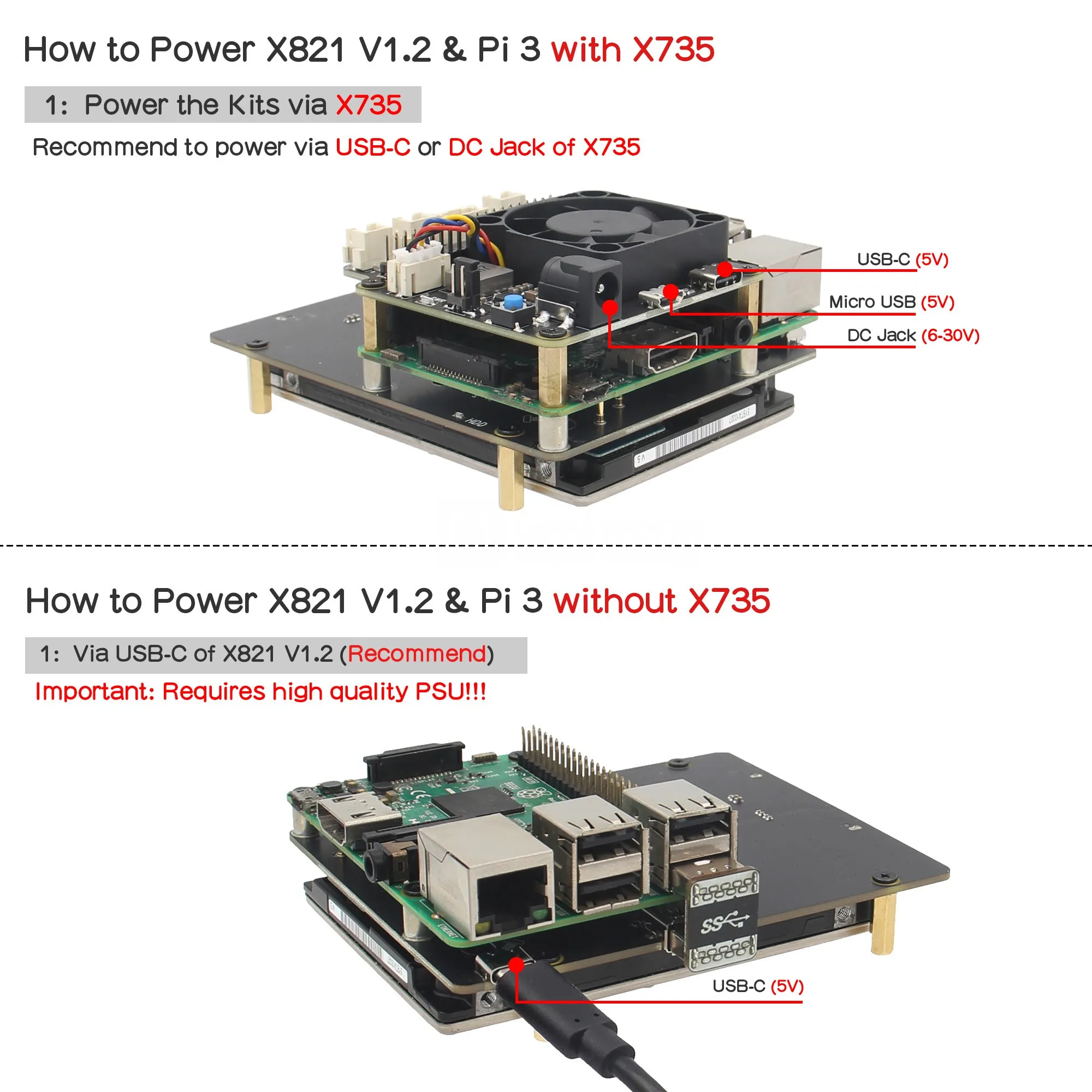 - Ou l’alimentation via X735 si vous avez le X735: DC 6-30V In / USB-C 5V In