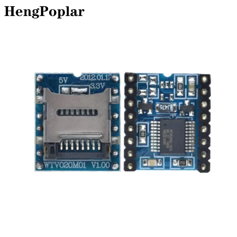 Module vocal de carte SD enfichable WTV020, le WTV020-16S principal de sélection de puces et les puces de paquet WTV020-20S. Mises à jour vocales directement via un lecteur de carte SD sur un remplacement de PC. Le contrôle est également une carte SD stockée dans les modifications de fichiers TXT. Le module prend en charge le système de fichiers FAT. Support et lecture de fichiers ADPCM WAV. Prend en charge le mode de contrôle série à deux fils, les méthodes clés et la manière série UART232. Reconnaissance automatique de la parole et format de taux d’échantillonnage de la parole.