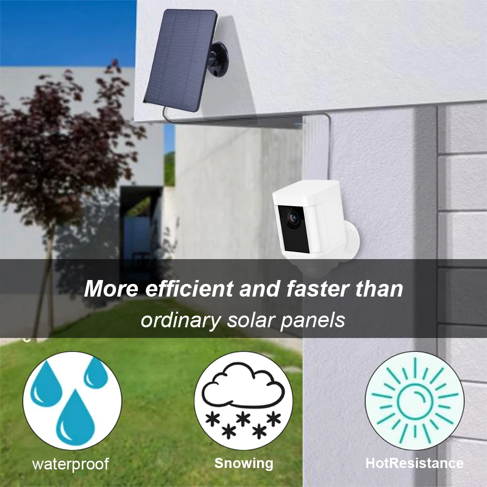 Le panneau de charge solaire étanche est spécialement conçu pour les caméras Ring Stick Up & Spotlight (version batterie). Il offre une puissance de sortie jusqu’à 4W, ce qui le rend plus efficace et plus rapide que les panneaux solaires ordinaires.