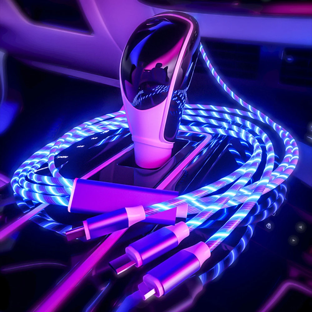 Câble de données 3-en-1, câble de charge rapide 66W, câble de voiture adapté au câble LED de téléphone portable IOS Android TypeC
