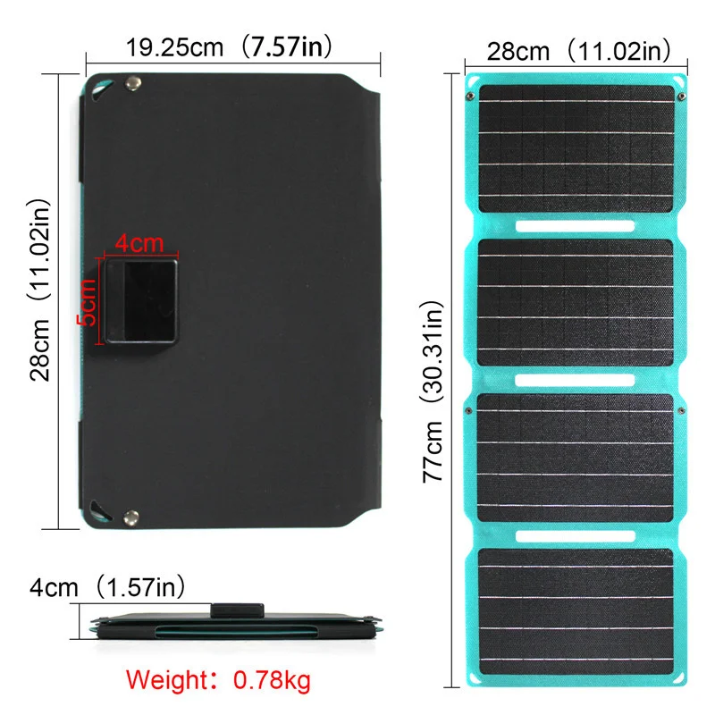 - Les panneaux solaires de 20W 5V et de 15W 5V ne peuvent charger que les produits avec une interface USB et tension de 5V.