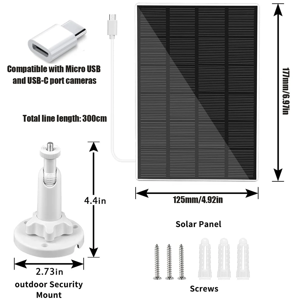 Ce panneau solaire est équipé d’un support réglable à 360° pour une position parfaite afin de capter suffisamment de lumière solaire. L’installation est facile grâce au matériel de fixation inclus. Il suffit de percer 2 trous dans le mur, d’insérer la base et de fixer le panneau solaire. Le câble de 3 mètres vous permet de choisir la meilleure position pour capter la lumière du soleil.