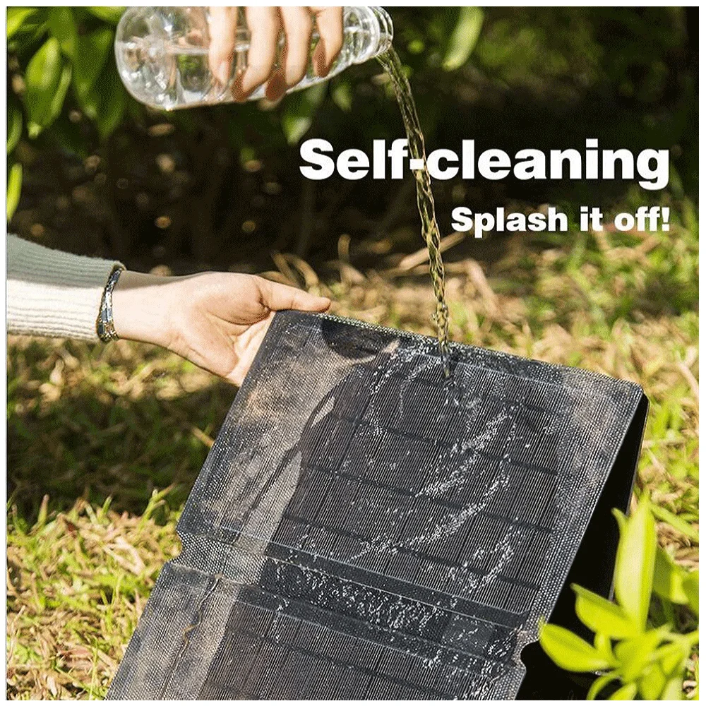 Le panneau solaire de ce chargeur est laminé avec du ETFE, un matériau résistant à l’eau et aux intempéries, assurant une utilisation en extérieur sans problème.