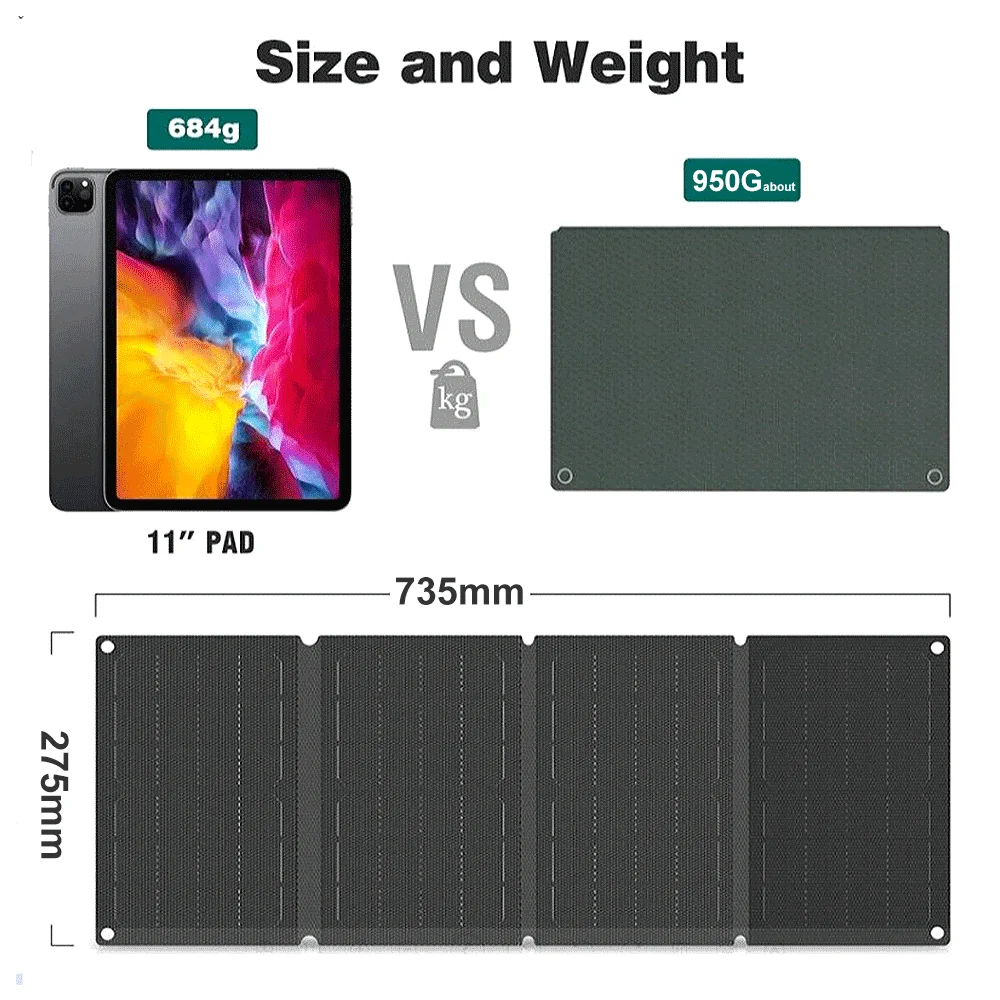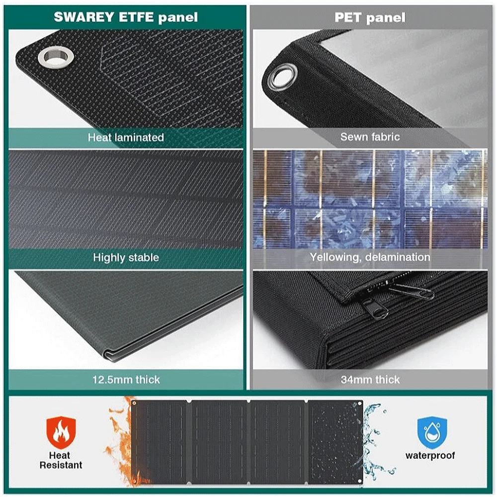 Test et avis sur le ETFE-Panneau solaire portable étanche, chargeur de téléphone, sac pliant, charge rapide, chargeur photovoltaïque extérieur, type C, PD, USB QC3, 40W
