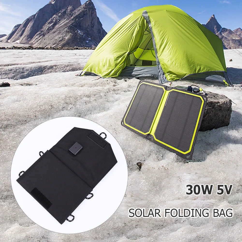 30W 5V USB Pack de panneau solaire portable étanche pour le camping en plein air d’urgence pliable chargeur de cellules de batterie pour téléphone portable Power Bank Camping Light avec mousqueton noir Caractéristique: Panneau solaire de silicium polycristallin de rendement élevé: Ce chargeur 30W solaire est fait de panneau solaire de silicium polycristallin d’Un-catégorie avec l’efficacité jusqu’à 20%. Cela signifie que vous obtiendrez plus de puissance et une charge plus rapide dans les mêmes conditions d’ensoleillement. Conception portable pliable: ce chargeur de panneau solaire a 3 couches de pliage, lorsqu’il est complètement plié, la taille est de 180*135MM, semblable à un portefeuille. Livré également avec 2 mousquetons, il est vraiment pratique pour les voyages, la randonnée, le camping et plus d’activités de plein air. Protection de l’environnement et économie d’énergie: pas de batterie intégrée. L’alimentation est directement sortie de l’interface USB, et il n’y a pas de batterie intégrée pour transférer l’alimentation. Il fournit directement l’alimentation à l’équipement électronique via l’interface de sortie USB, et réserve l’alimentation à tout moment, afin que vous puissiez voyager à l’extérieur sans souci. Largement compatible: la sortie USB de ce chargeur de panneau solaire est d’environ 5V 2A (max), ce qui peut charger 99% des smartphones sur le marché, comme pour iPhone Samsung Huawei Honor Google Pixel Sony LG OnePlus Xiaomi. Chargez les banques d’énergie, les lumières d’USB, les haut-parleurs et plus d’USB chargeant des dispositifs. Spécification: Remarque: ![]()