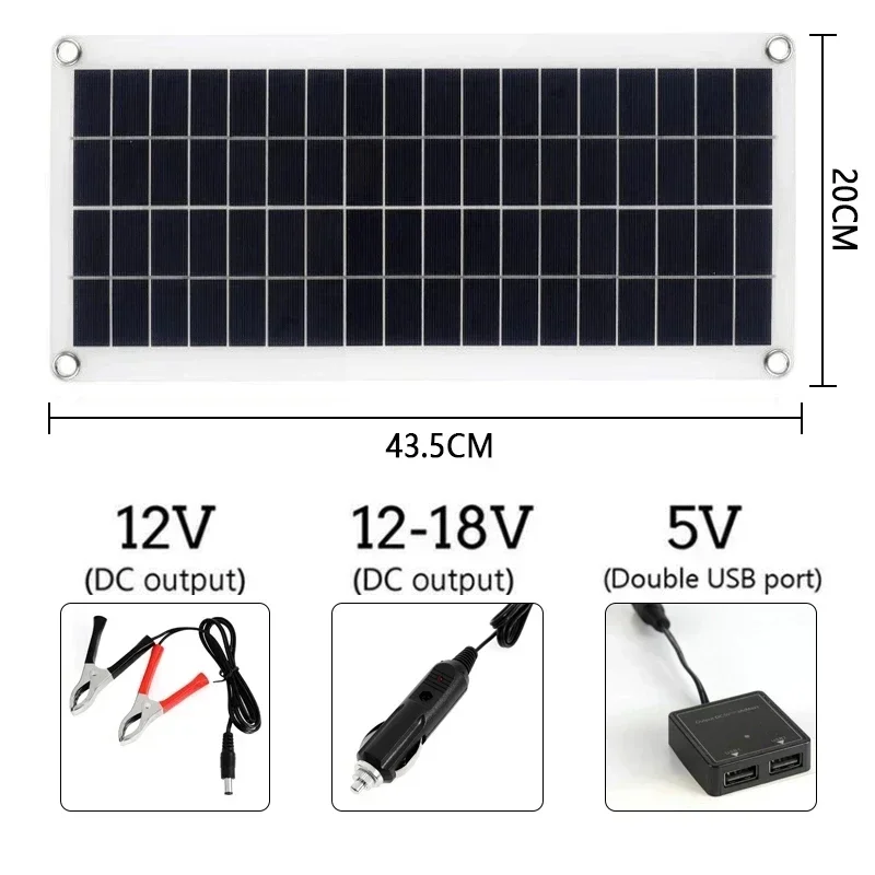 - Panneaux solaires à double sortie avec interface USB pour répondre à toutes vos exigences.