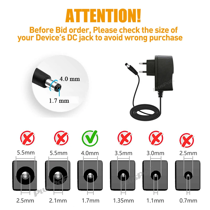 La prise DC de ce chargeur adaptateur universel est de taille spécifique (4.01.7mm), il est donc important de vérifier la compatibilité avec vos autres appareils électriques avant de l’utiliser.