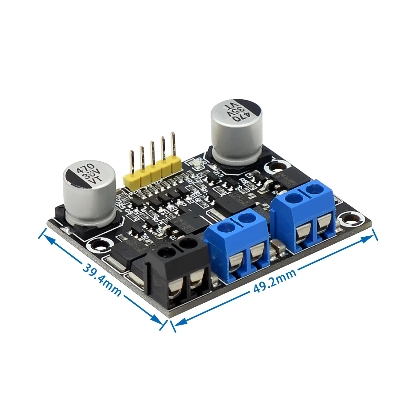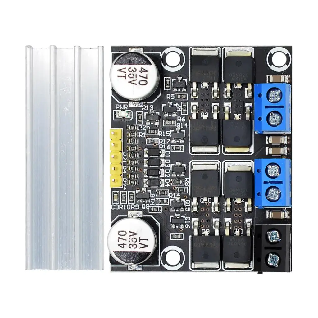 Le courant de travail unique de cette carte est de 10A, avec un courant de crête de 15A. Il est recommandé d’améliorer la dissipation thermique pour les courants supérieurs à 8A. La plage de cycle de service va de 0 à 100% et le diamètre du trou de montage est de 3mm.