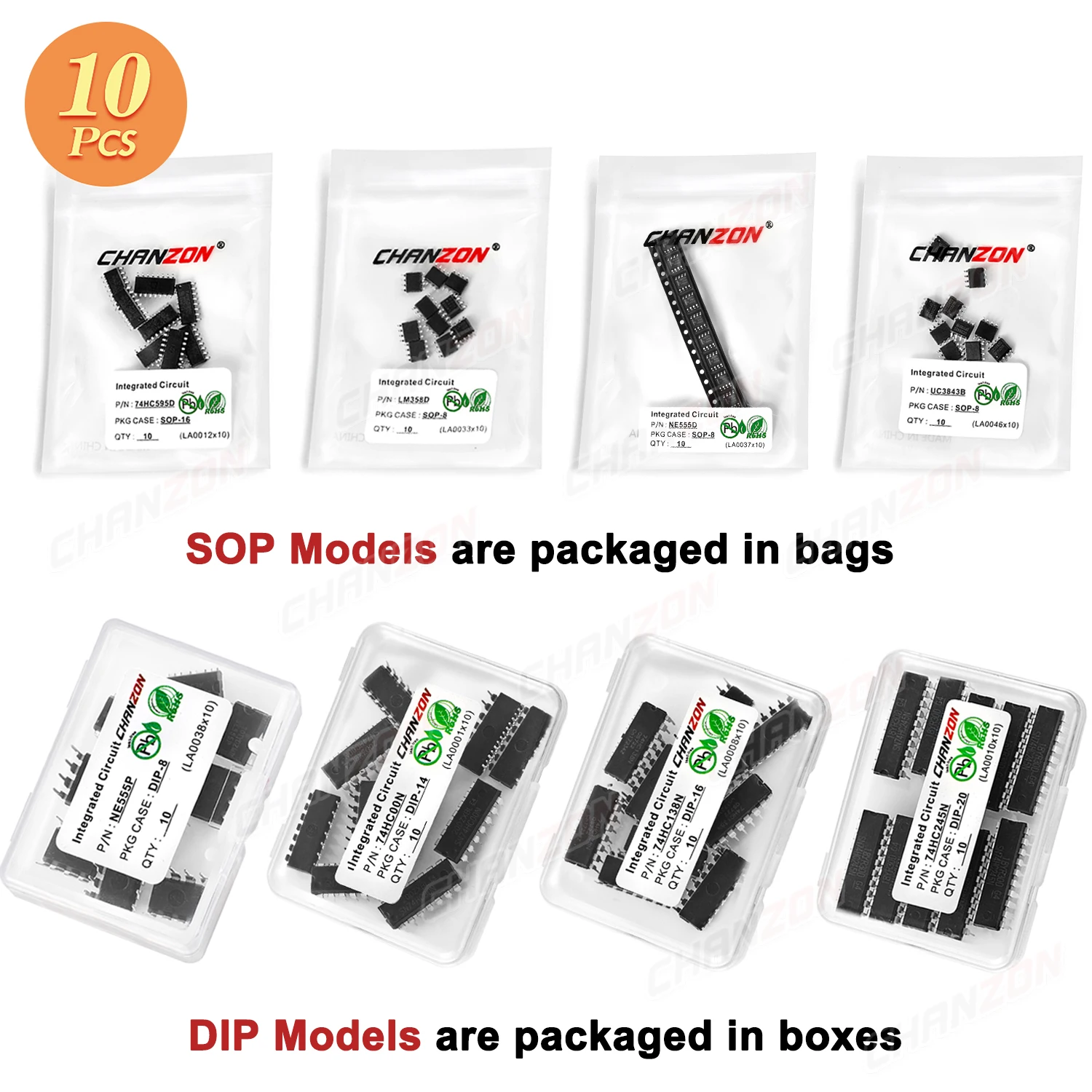 Le pack inclut les modèles suivants : Lm358, 74hc595, Tl072, Cd4017, Tl074, Tl494, Cd4011, Lm386, Ne555 et L293d.