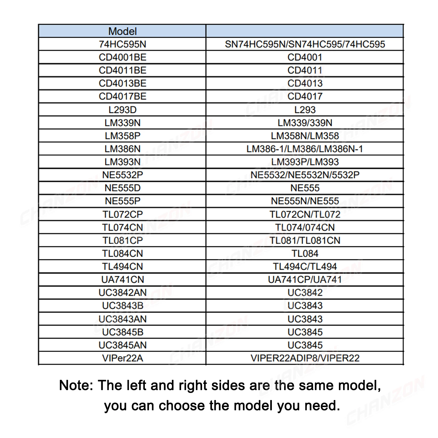 - Convient pour une utilisation avec des circuits intégrés tels que LM358, 74hc595, Tl072, Cd4017, Tl074, Tl494,