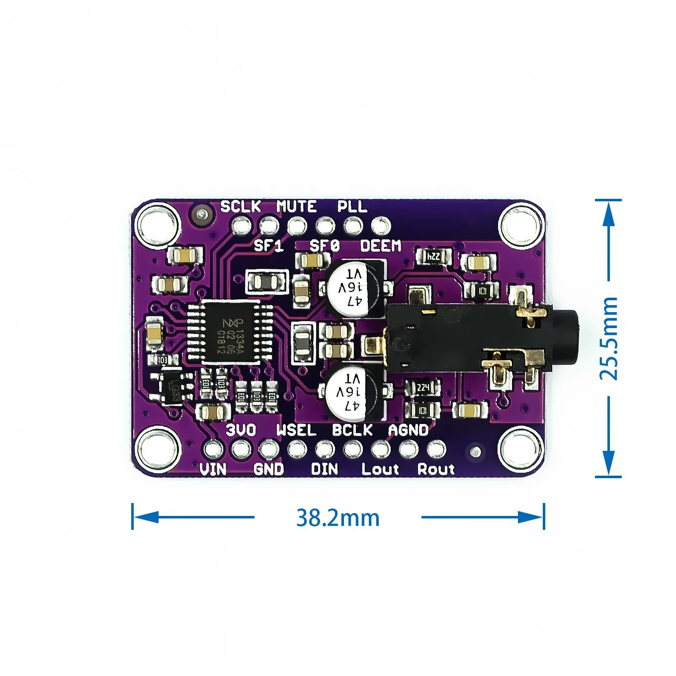 En plus de ses fonctionnalités principales, la carte CJMCU-1334 offre également une broche de sourdine et un filtre de désaccentuation activables pour une meilleure expérience audio.
