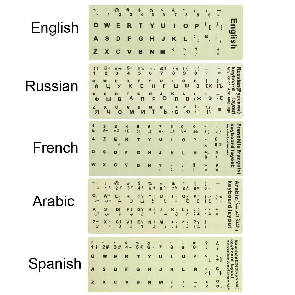 Ces autocollants de clavier sont disponibles dans plusieurs langues, notamment l’espagnol, l’anglais, le russe, l’arabe et le français, ce qui permet de résoudre les problèmes de frappe des utilisateurs de différentes nationalités.