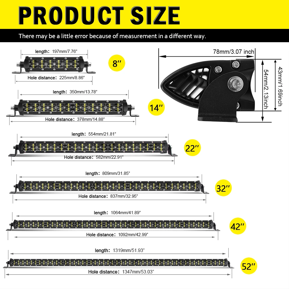 - 22 pouces : 18000LM / 120W