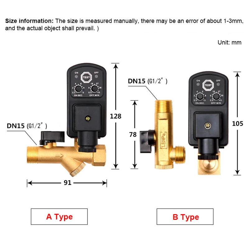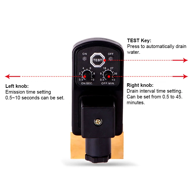 La vanne de vidange électronique compresseur d’air 1/2″ est une électrovanne de distribution normalement fermée utilisée comme interrupteur d’eau automatique. Elle fonctionne avec différentes tensions de fonctionnement, allant de AC220V à 12VDC, et peut supporter une pression de travail maximale de 0-1.6MPa(0-16kg/cm²). Fabriquée en laiton, elle est capable de libérer l’eau, le gaz ou l’huile selon vos besoins. Son temps d’émission de vidange est réglable de 0.5 à 10 secondes et son temps d’intervalle de vidange est réglable de 0.5 à 45 minutes. Elle convient parfaitement pour les applications de plomberie et de motorisation.