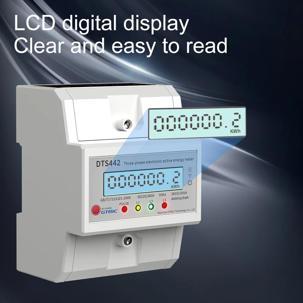 Nom du produitGTRIC-Compteur d’énergie électrique triphasé avec écran numérique LCD, compteur de consommation d’énergie, rail DIN, 4 fils, 4P
