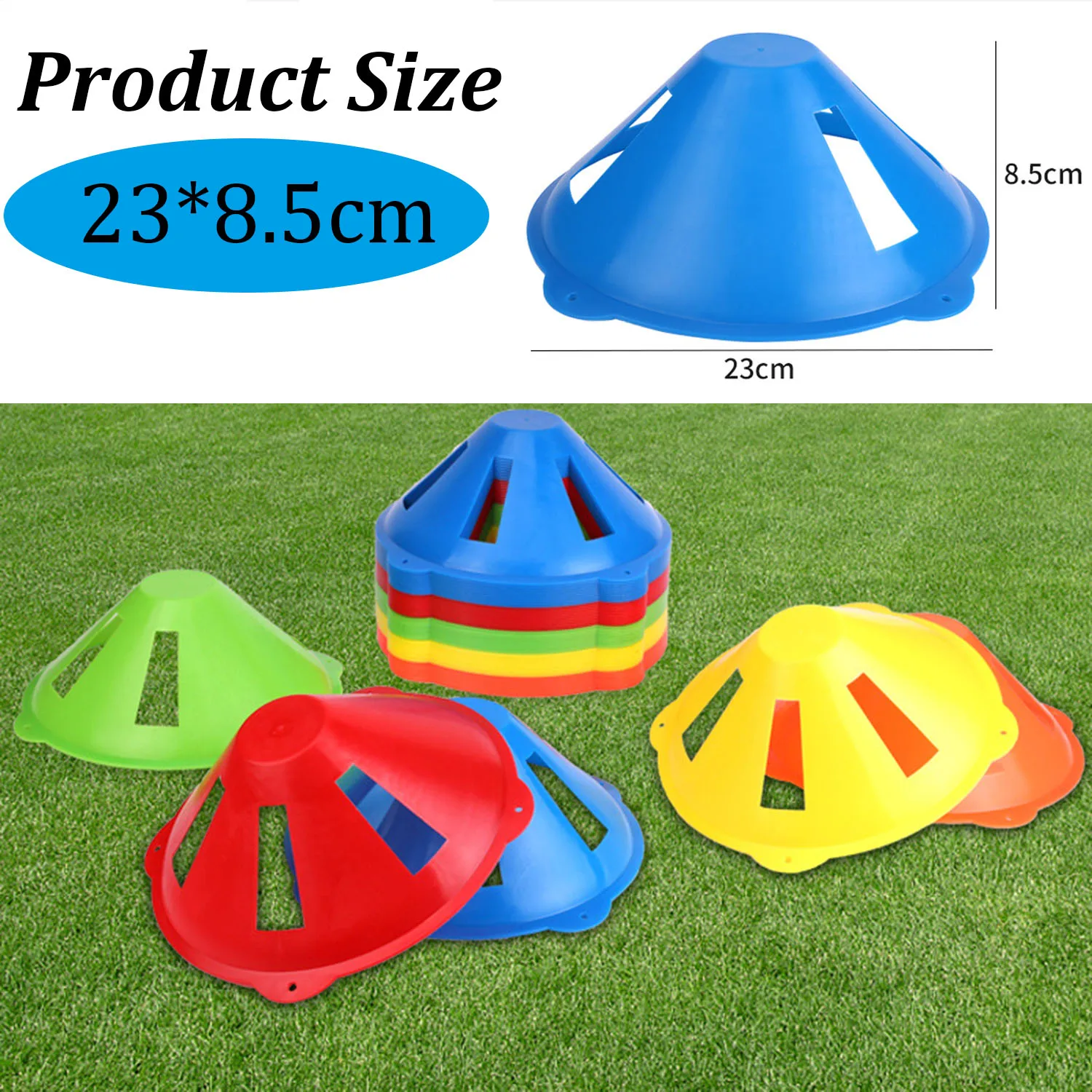 Le Disque de Cônes d’Agilité de Football mesure 23 cm de diamètre et 8.5 cm de hauteur.