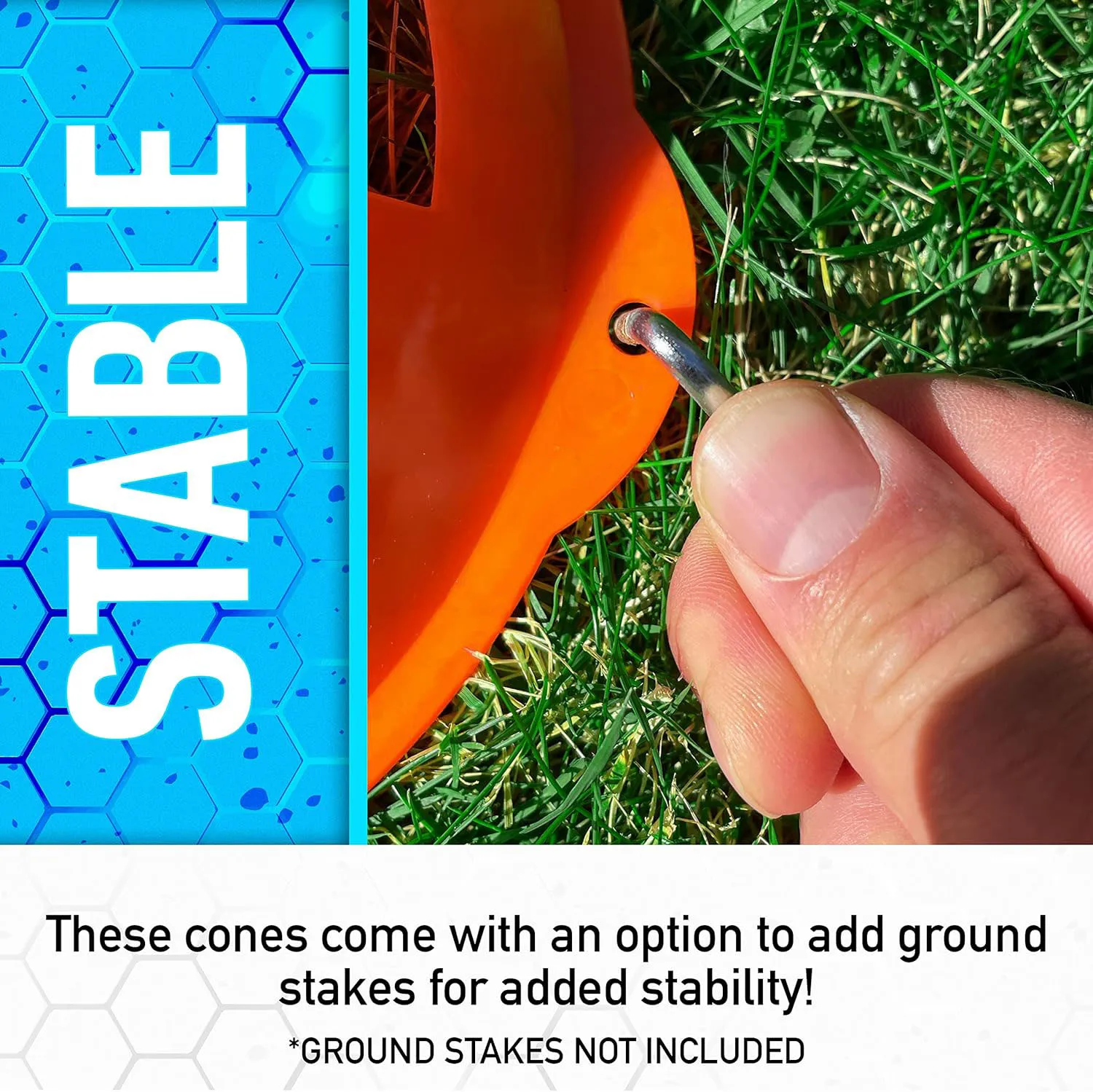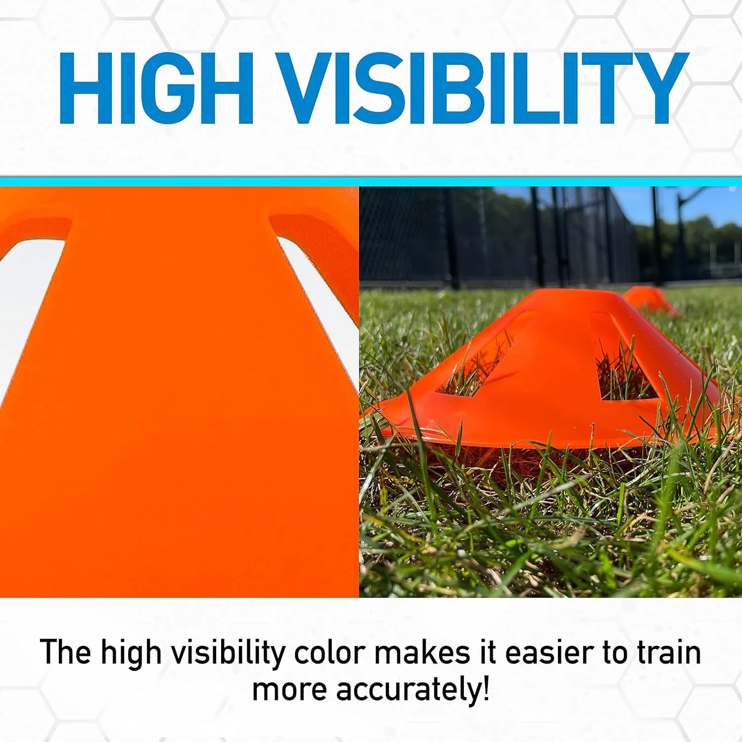 Un avantage de ce produit est sa capacité à être empilé, ce qui facilite son transport d’un endroit à l’autre. Les cônes peuvent être utilisés pour marquer les lignes latérales, les bornes, les exercices d’agilité de vitesse, les obstacles, les cibles, et bien d’autres activités d’entraînement.