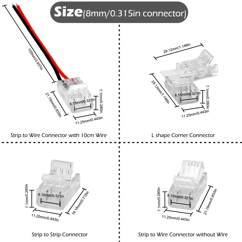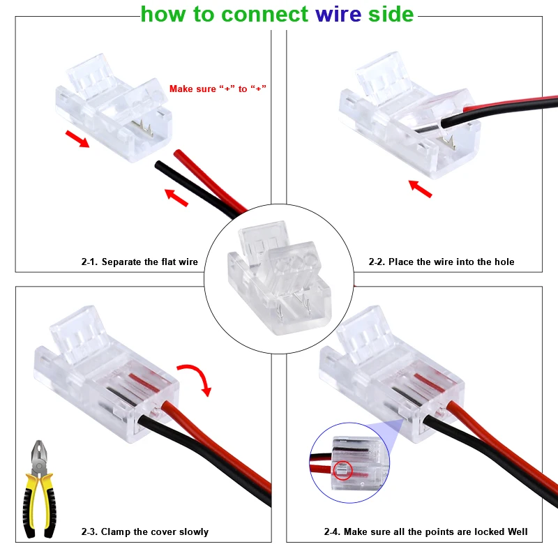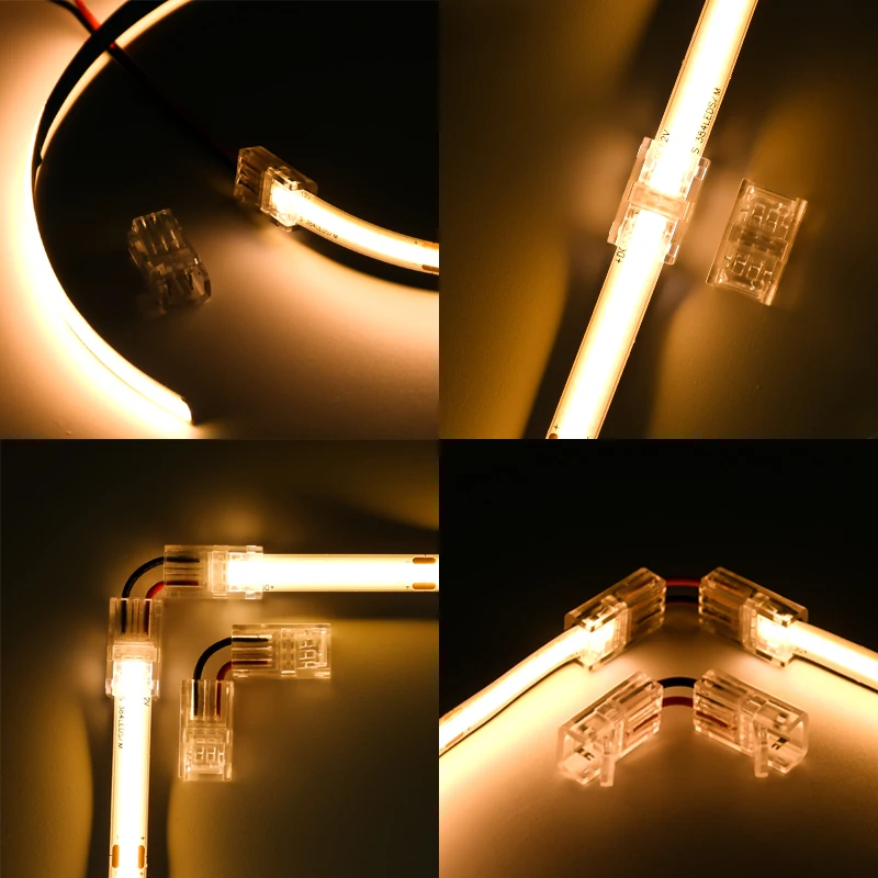 Les connecteurs sont compatibles avec les bandes LED SMD / COB IP20/30 non étanches sans revêtement de colle. Ils offrent une connexion sûre et fiable pour garantir un éclairage homogène et constant.