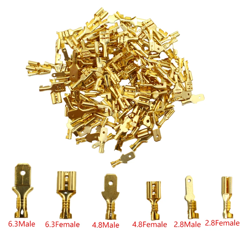 Les connecteurs de fil électrique sont fabriqués en laiton et ont une belle couleur dorée.