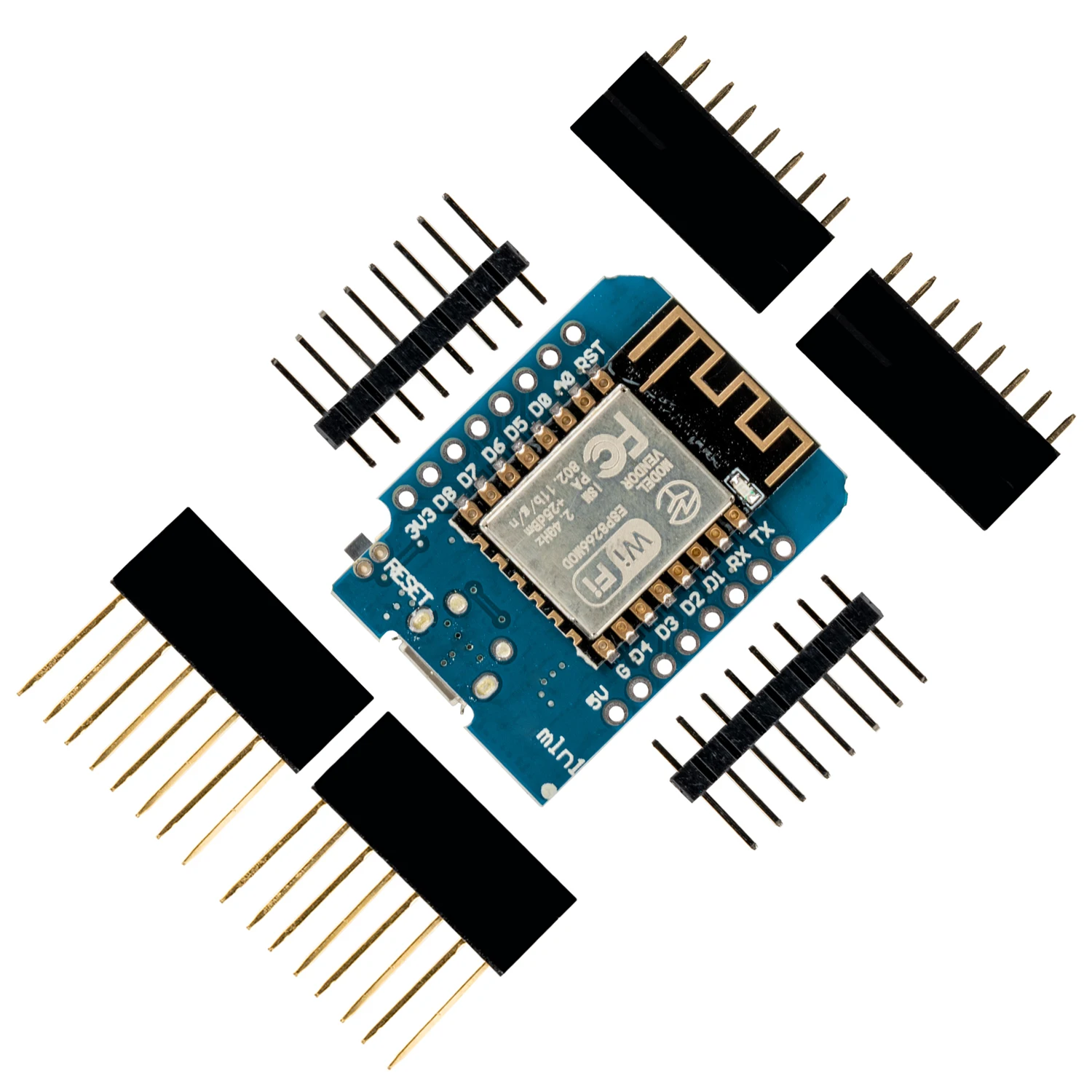 - 11 broches d’entrée/sortie numériques, toutes les broches ont une interruption/pwm/I2C/un fil et une connexion micro-USB