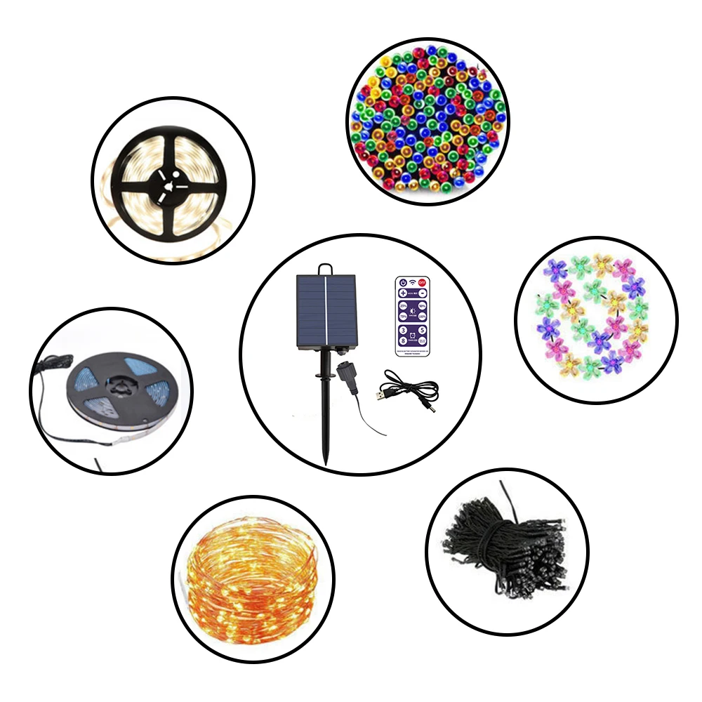Guirlandes solaires, guirlandes solaires en fil de cuivre, guirlandes solaires en forme d’étoile complète, pointes de route solaires et autres utilisations de contrôle d’éclairage.