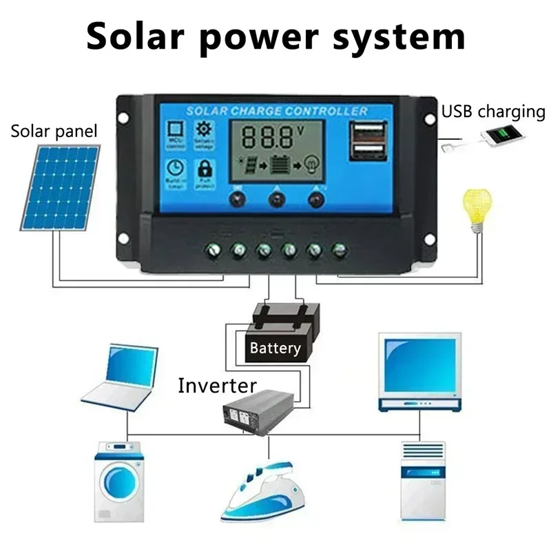 Le contrôleur de cellule solaire est utilisé pour charger les téléphones MP3, tablettes et autres appareils contrôlés grâce à l’énergie solaire. Il dispose d’un double port USB femelle pour une connexion facile.