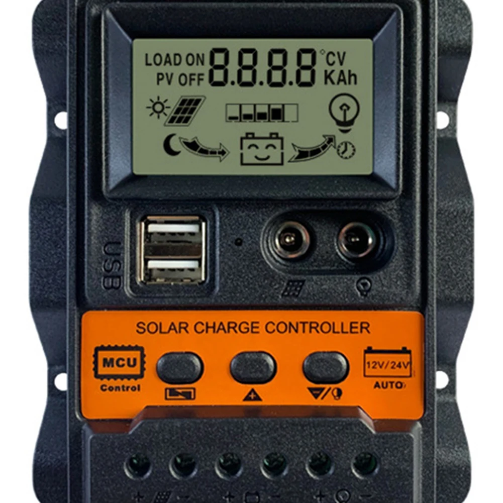 Contrôleur de charge solaire à double écran LCD USB 12V 24V Contrôleur de batterie de panneau solaire Chargeur Régulateur avec fonction de mémoire de mise hors tension