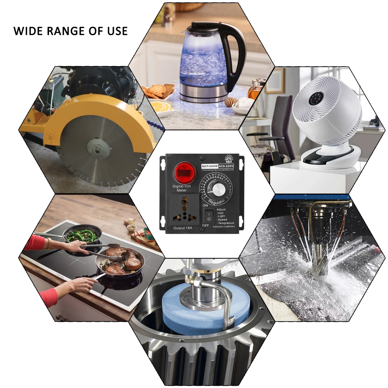 - Régulateur de tension SCR haute puissance, régulation en continu, aide à ajuster la vitesse, la température, la tension et la lumière.