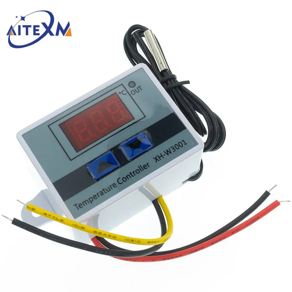 XH-W3001 est un contrôleur de température numérique avec une sortie directe. Il est capable de fournir une capacité de sortie maximale de 10A. L’alimentation requise est de AC110-220V. Ce contrôleur est conçu pour mesurer et contrôler la température dans la plage de -50°C à 110°C avec une précision de 0.1°C. Il utilise une sonde étanche NTC10K de 1 mètre de long pour la mesure de l’entrée.