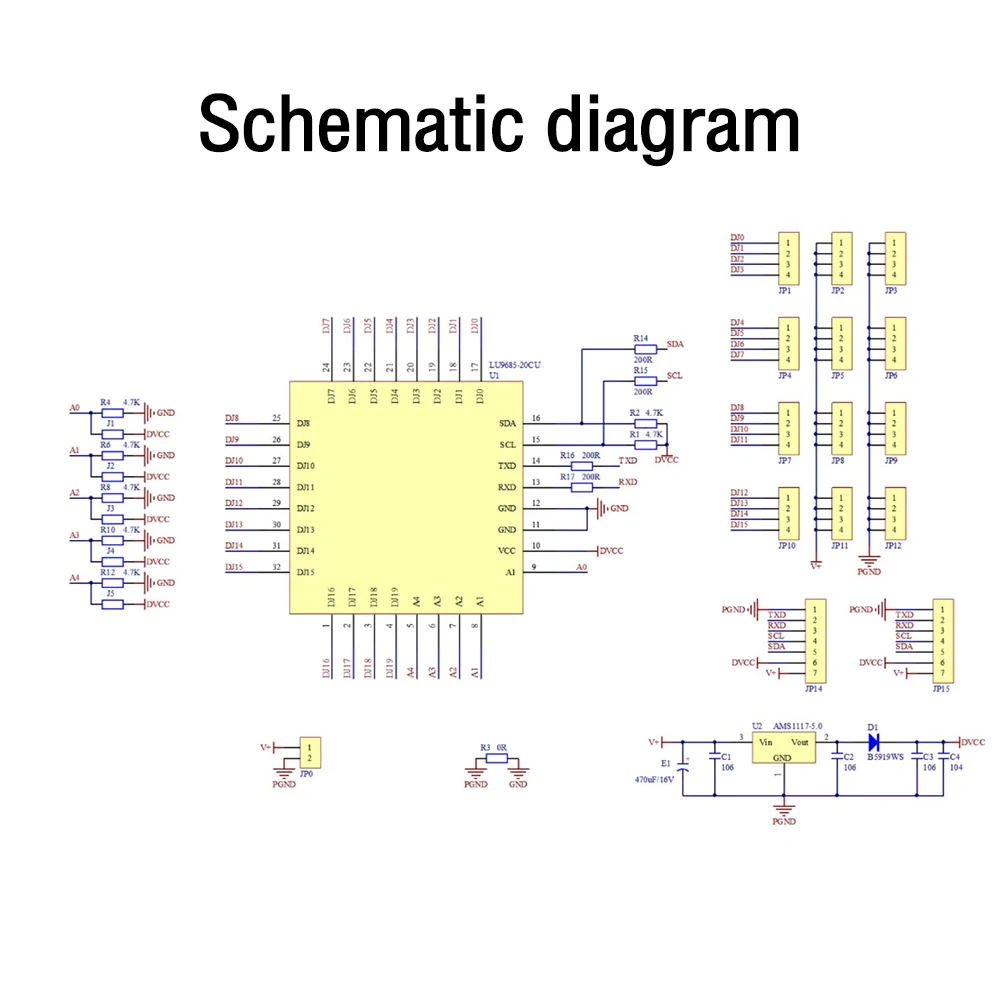• Le chip LU9685 permet de contrôler de manière précise 16 canaux de servo-moteurs à l’aide de commandes I2C ou série.