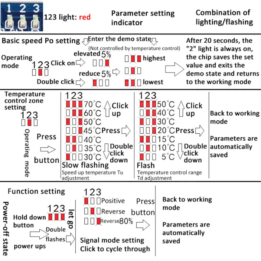 - Mode inverse 80% : pour les ventilateurs spéciaux de synchronisation inverse, changement inverse, sortie complète est de 20