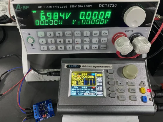 Plus la fréquence PWM d’entrée du module est élevée, plus l’erreur de tension de sortie est grande par rapport à la basse fréquence, et l’erreur admissible des paramètres du produit doit être suivie lors de l’utilisation dans les paramètres admissibles. La précision de sortie de la fréquence PWM d’entrée testée est élevée dans des conditions de 2kHz à 8kHz.