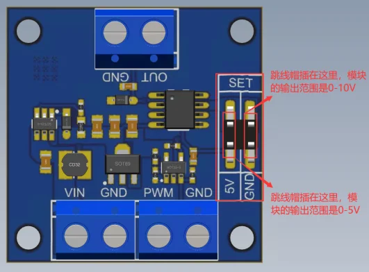 Le produit présente certains points importants à prendre en compte. Le capuchon du cavalier ne doit pas être inséré à 5V et GND. De plus, l’alimentation du module doit être strictement contrôlée dans les 12V. Il est recommandé d’utiliser une fréquence PWM d’entrée supérieure à 22Hz ou un rapport cyclique supérieur à 10% pour éviter les problèmes de sortie
