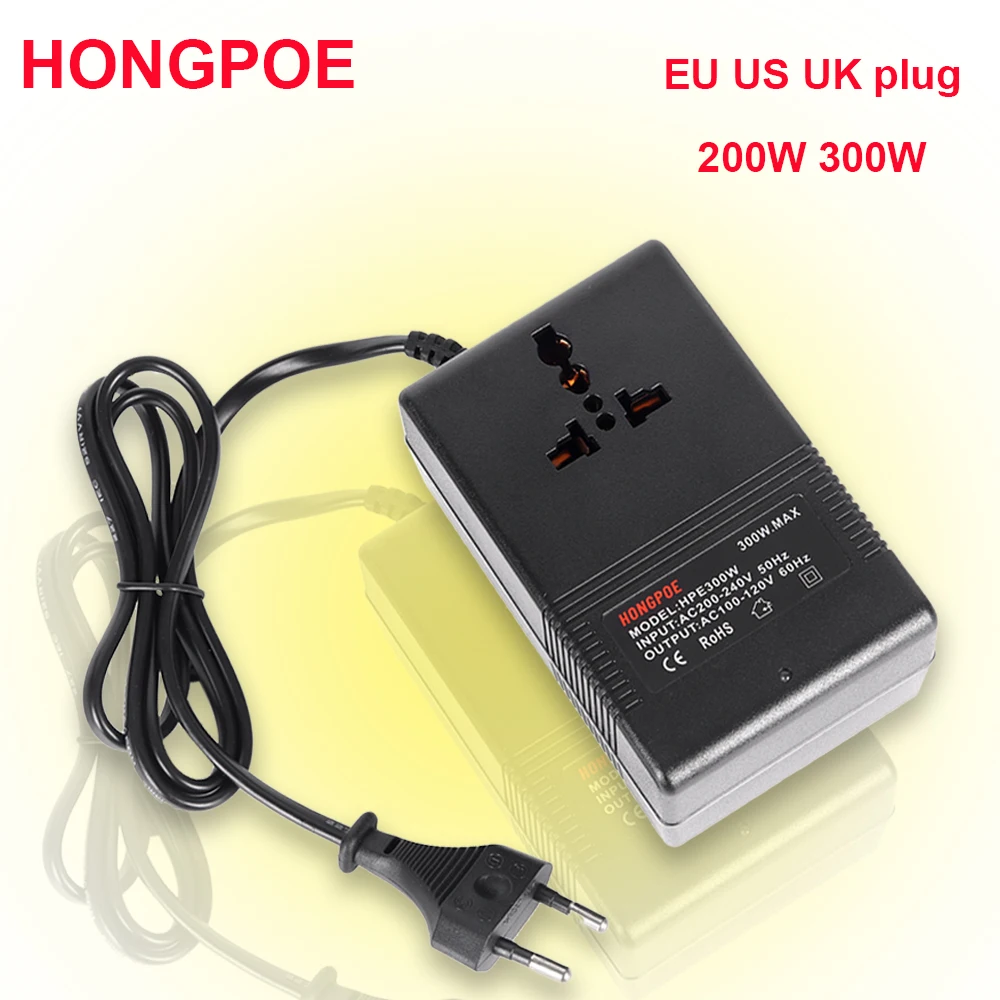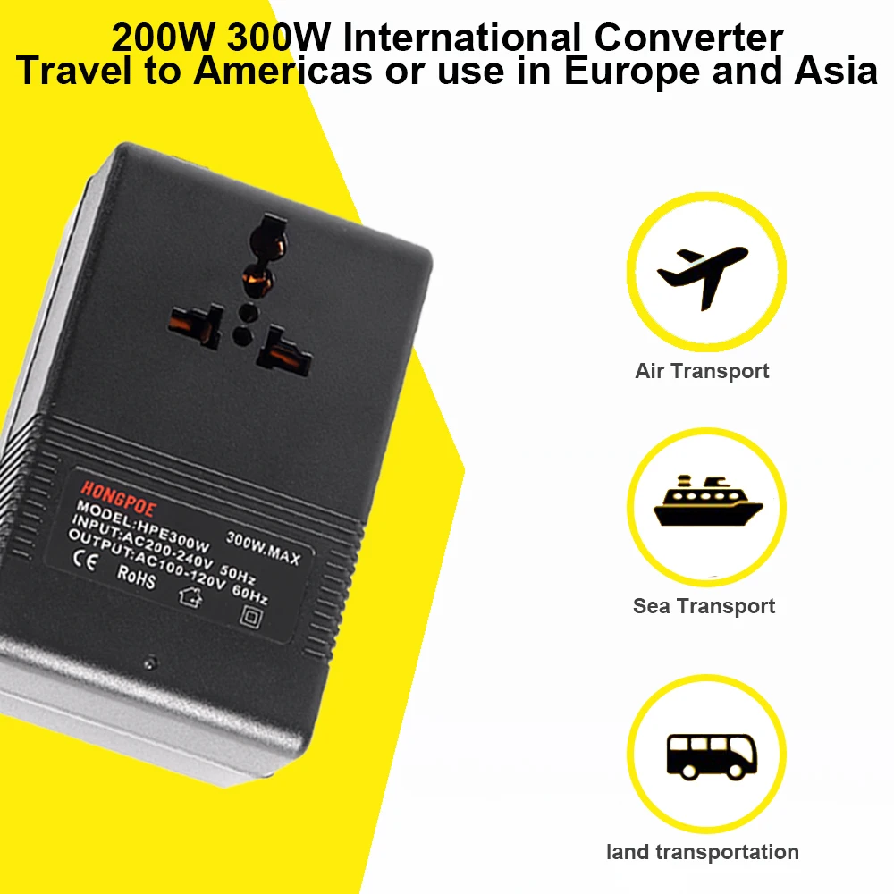 Le convertisseur de tension de voyage de 300W permet de changer l’électricité de 220V/240V à 100V/120V. Ce convertisseur est idéal pour les voyages à l’étranger.