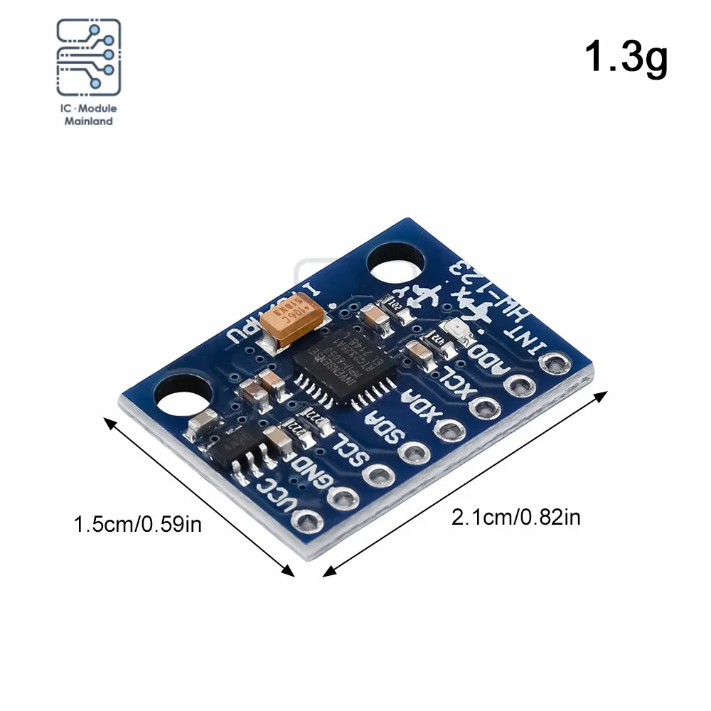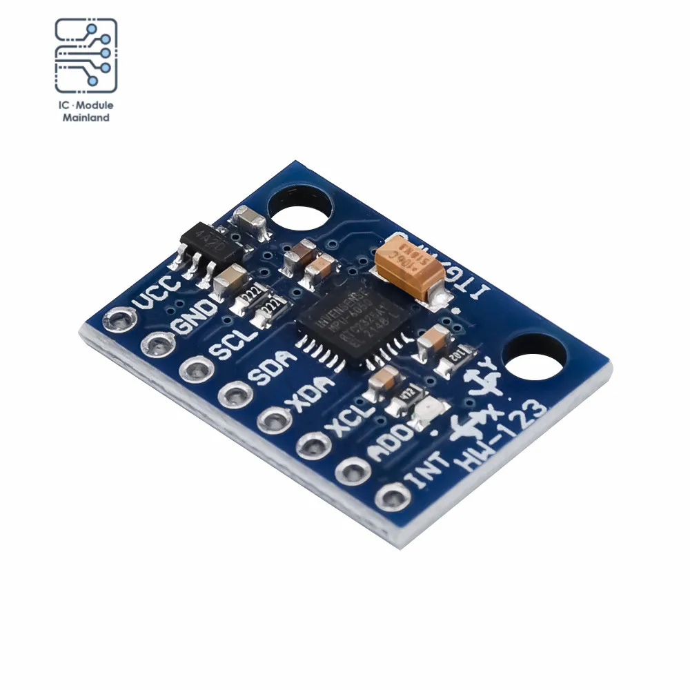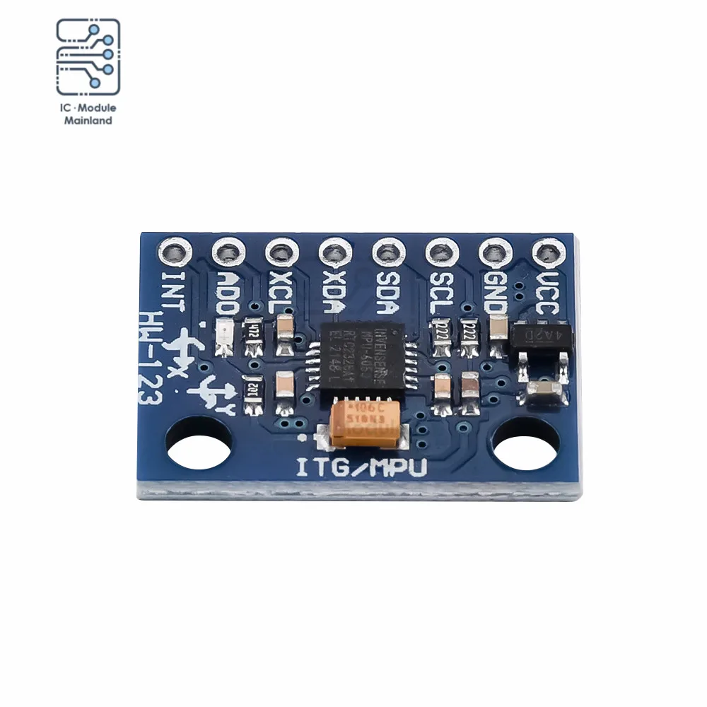 Le GY521 MPU-6050 est un module de capteurs de gyroscope à trois axes et d’accéléromètre à trois axes conçu pour être utilisé avec les cartes Arduino. Il offre une sortie numérique des données d’algorithme de fusion de matrice de rotation 6 axes ou 9 axes, de quaternion et d’angle d’Euler. Le capteur de vitesse angulaire à trois axes (gyroscope) a une sensibilité de 131 LSB/°/sec et une plage de détection de ±250, ±500, ±1000 et ±2000 °/sec. Les accéléromètres programmables à trois axes ont des plages programmables de ±2g, ±4g, ±8g et ±16g. Ce module permet de réduire la sensibilité entre les axes de l’accéléromètre et du gyroscope, ce qui réduit l’influence du réglage et de la dérive du capteur. De plus, le moteur de traitement numérique du mouvement (DMP) réduit la charge des algorithmes de fusion complexes, la synchronisation des capteurs, la détection de pose, etc.