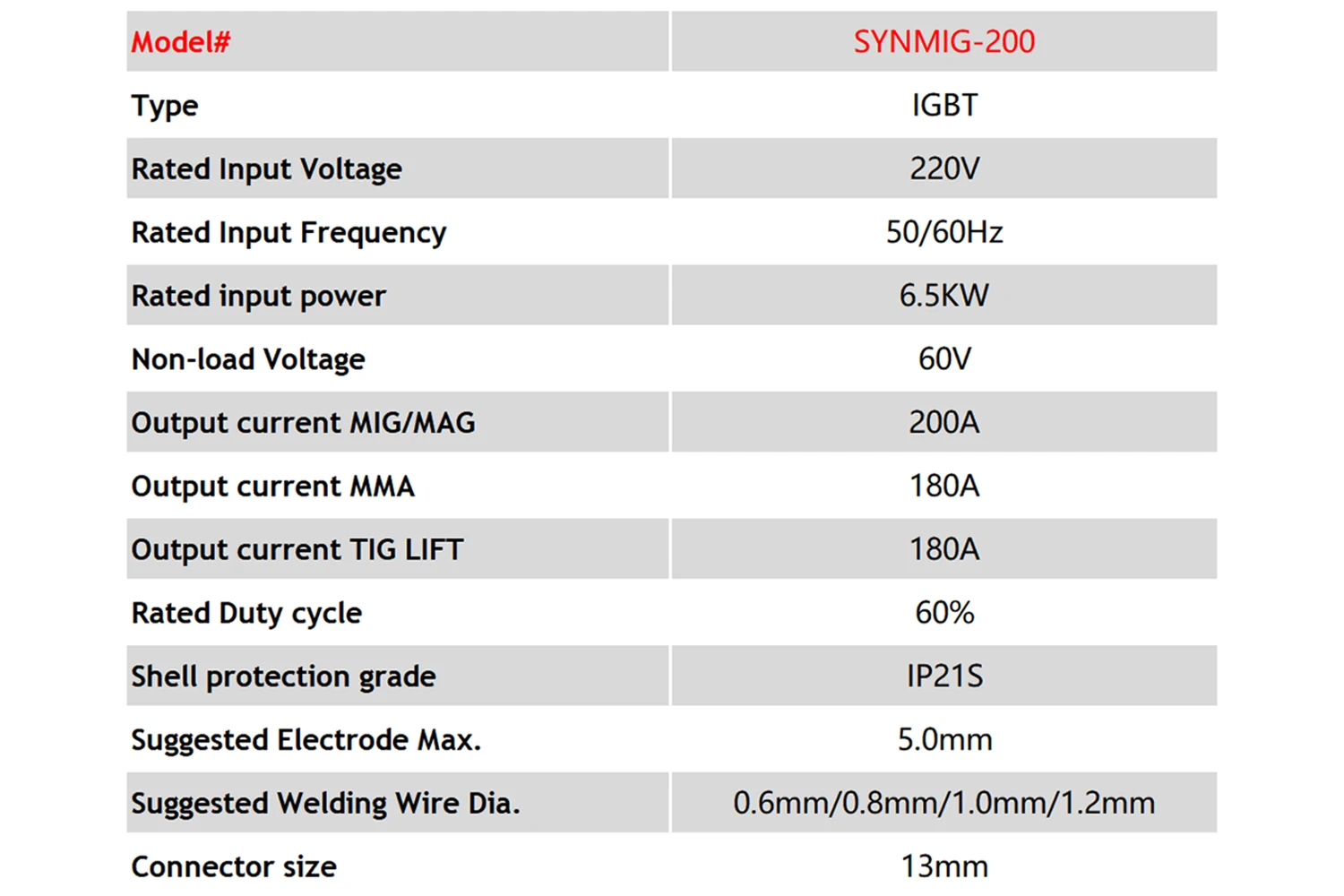 | Processus de soudage | MMA, MIG, TIG, MAG, Flux sans gaz |