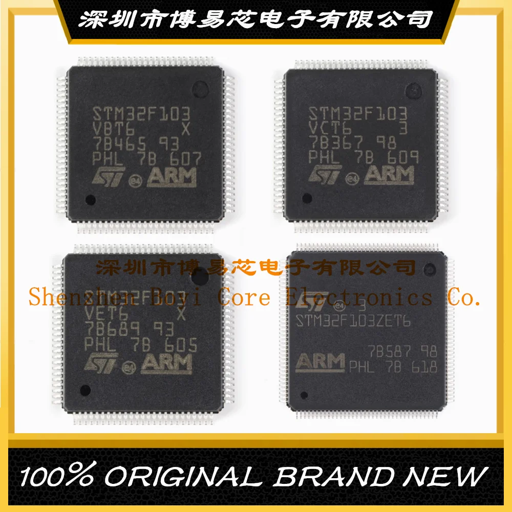- Modèles disponibles : STM32F103C6T6A, STM32F103C8T6, STM32F103CBT6, STM32F103R8T6, STM32F103RBT6, STM32F103RCT6, STM32F103RDT6, STM32F103RET6, STM32F103RFT6, STM32F103V8T6, STM32F103VBT6, STM32F103VCT6, STM32F103VET6, STM32F103ZET6