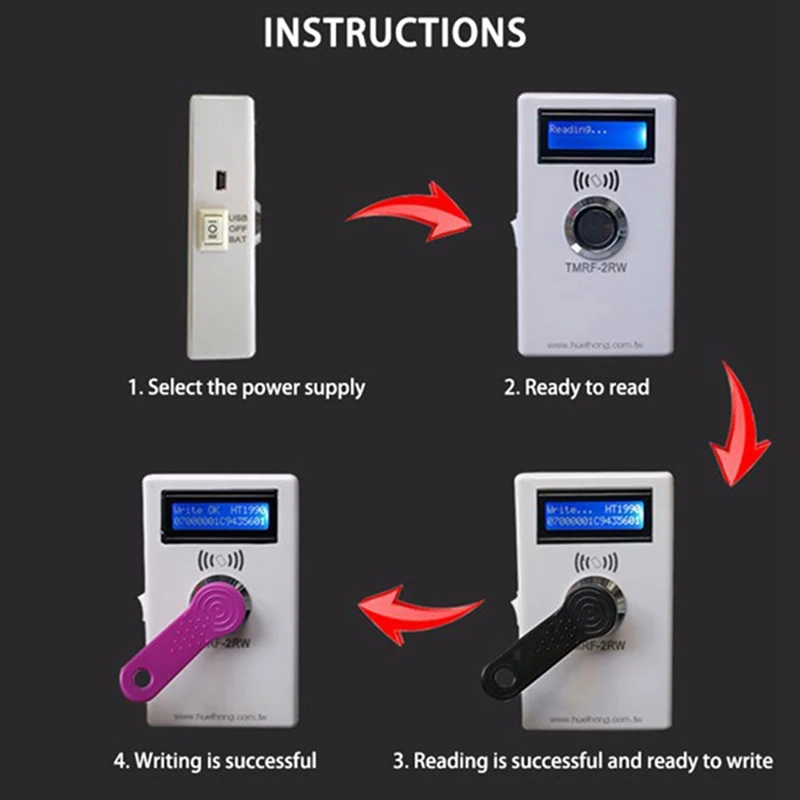 DescriptionLe programmateur DS1990A TMRF-2RW Khz est un duplicateur, copieur et lecteur RFID. Il prend également en charge le jeton de clé T5577 RFID.