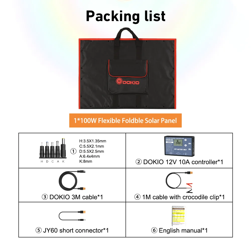 Le Dokio-Kit de panneaux solaires 18V 80W 100W est un