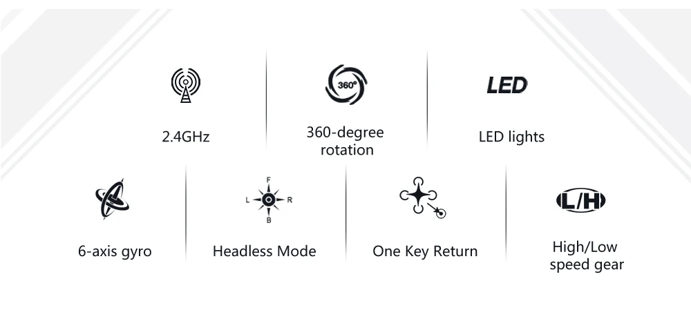 Le nouveau petit design, mini drone gyroscopique 2.4G 6 axes. Flip 3D, Mode sans tête, Retour automatique à une touche, Vol latéral, Accélération, Tourner à gauche/à droite, Haut/bas